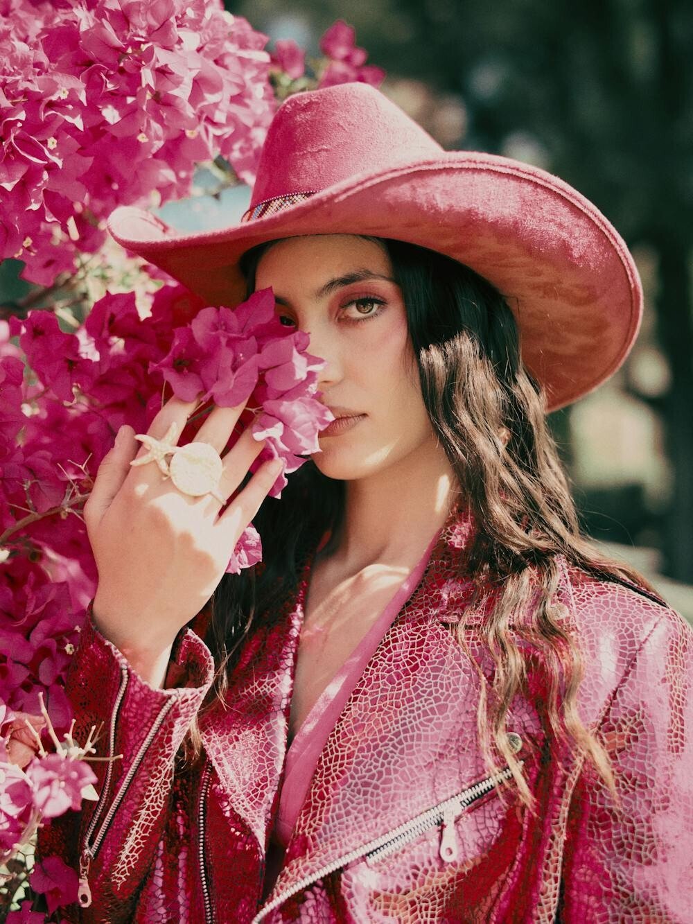 A leather cowgirl hat screams bold and adventurous. Ideal for those who love a bit of edge in their style.