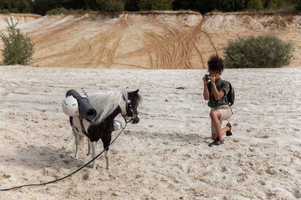 Natural settings allow for candid shots that feel authentic and alive. Use a wide-angle lens to capture the vastness of the landscape and the horse within it.