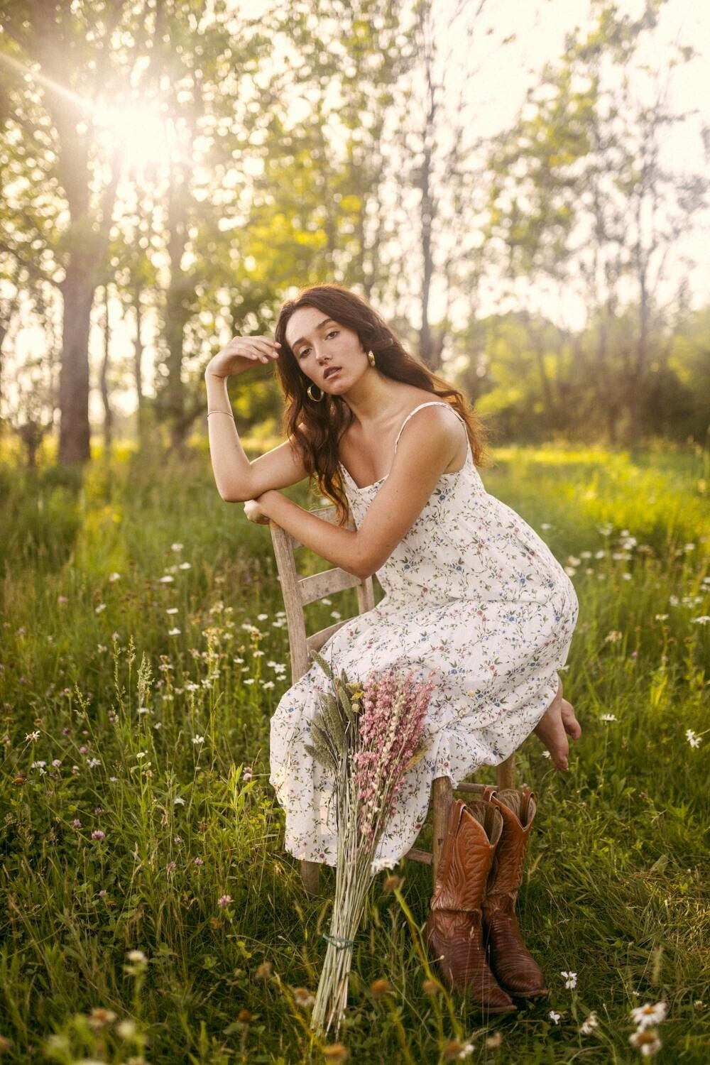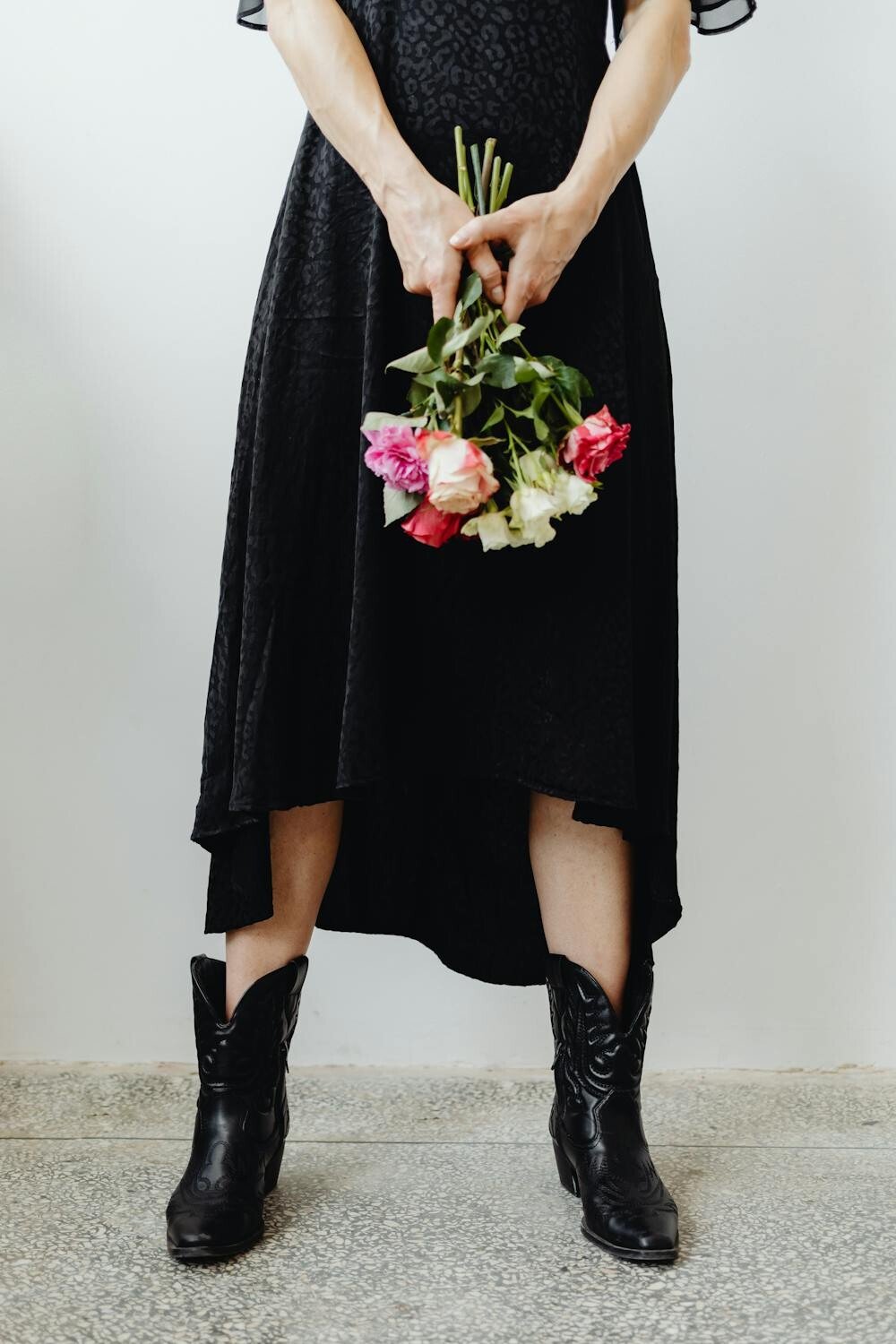Pair your western boots with a flowy, floral maxi dress for a boho-chic look that screams freedom and fun. The soft fabric of the dress complements the rugged texture of the boots, creating a beautiful contrast.
