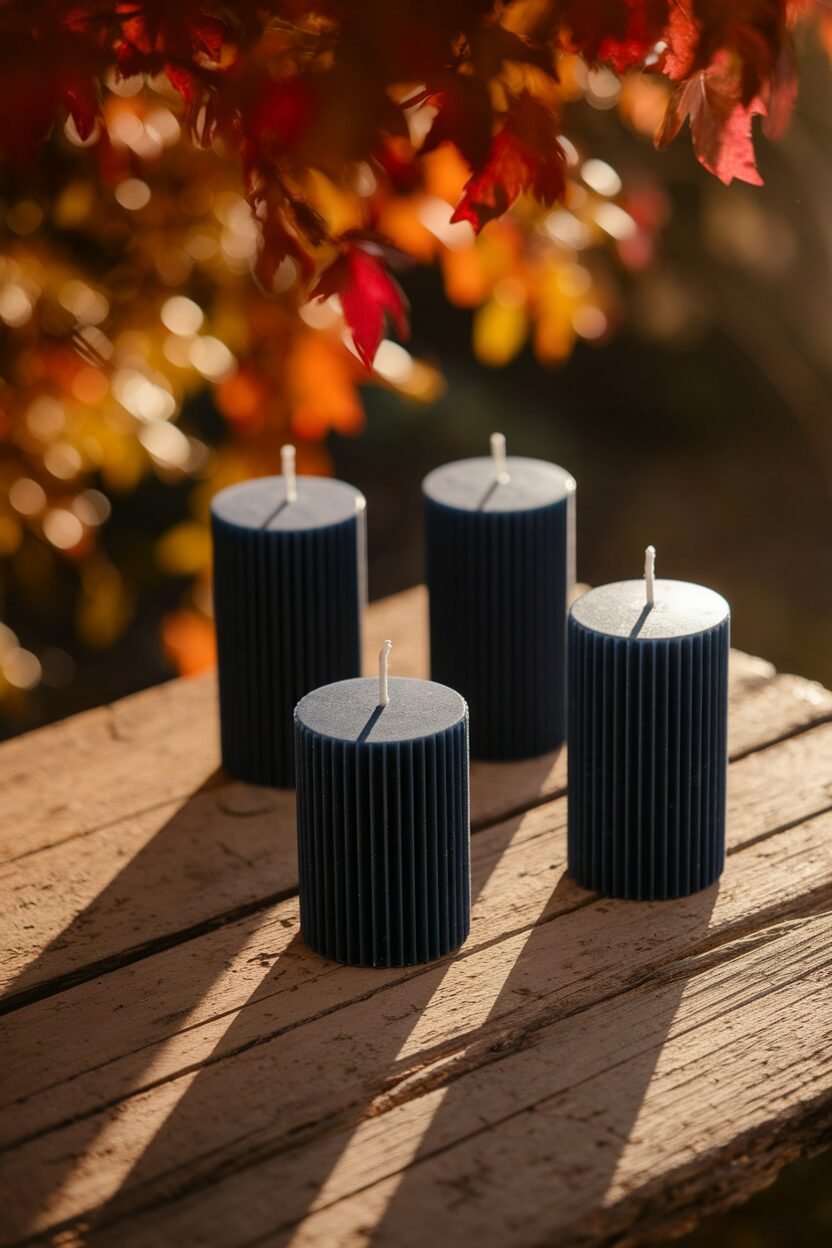 Candles create warmth and ambiance, especially in navy blue. Their deep color can make any room feel inviting and serene. Imagine the soft flicker of candlelight as you unwind.