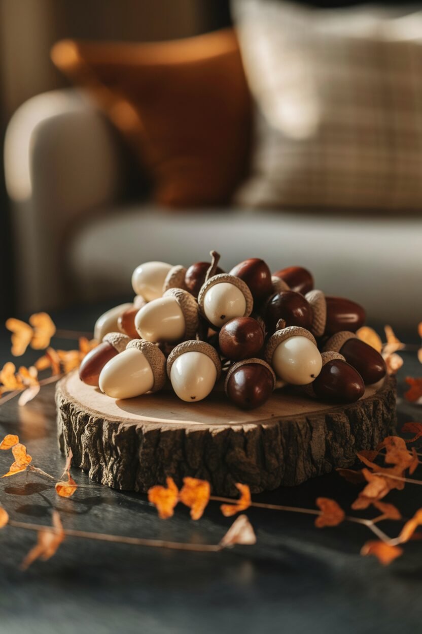 Gather acorns and place them in a shallow dish around a candle. You can even paint them in metallic hues for extra sparkle. It’s a centerpiece that celebrates the bounty of fall.