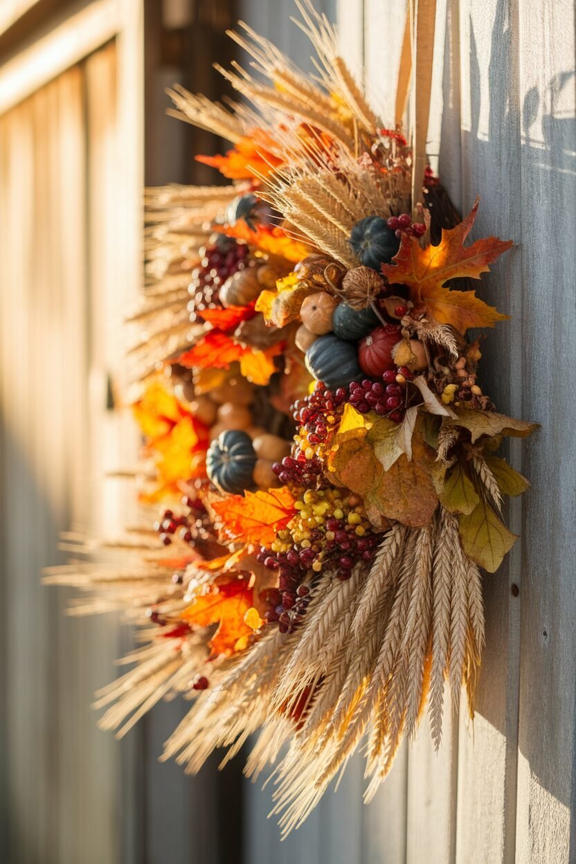 A wreath on your front door is an inviting sight, and a harvest wreath made from corn husks, dried flowers, and wheat stalks captures the spirit of the season.