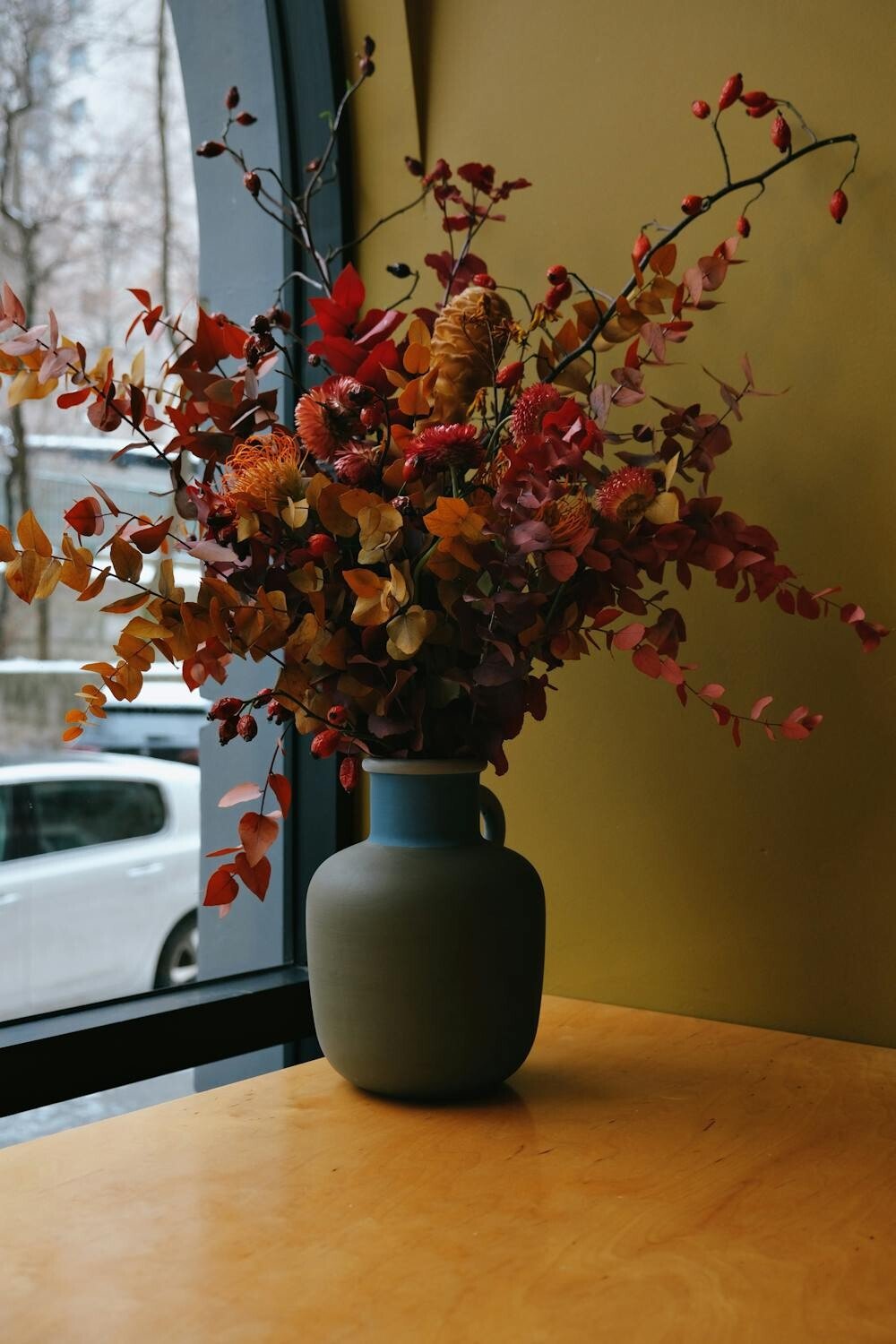 Bring the outdoors in with a simple arrangement of autumn branches in a vase. It’s a striking way to add height and natural beauty to a room.