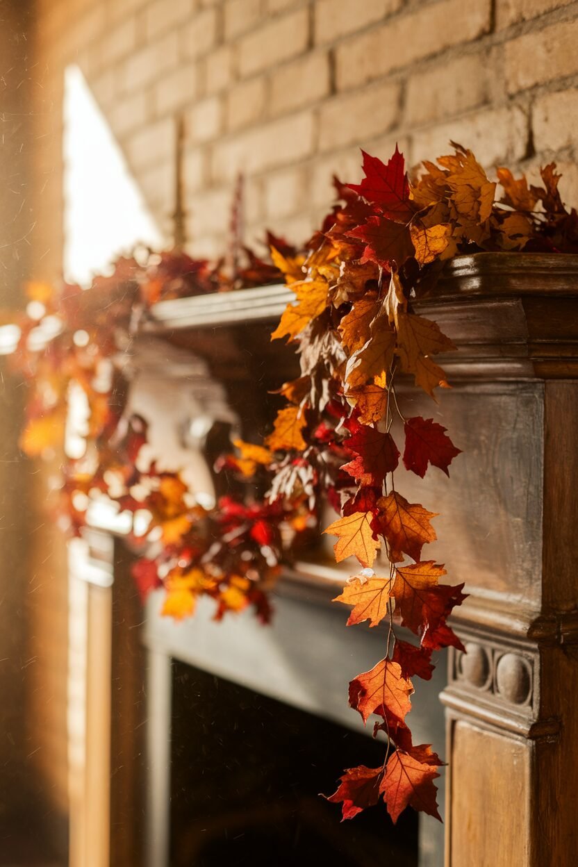 Create your own garland using faux leaves that mimic the beautiful colors of fall foliage. Drape them over your doorways or windows for a touch of nature indoors.
