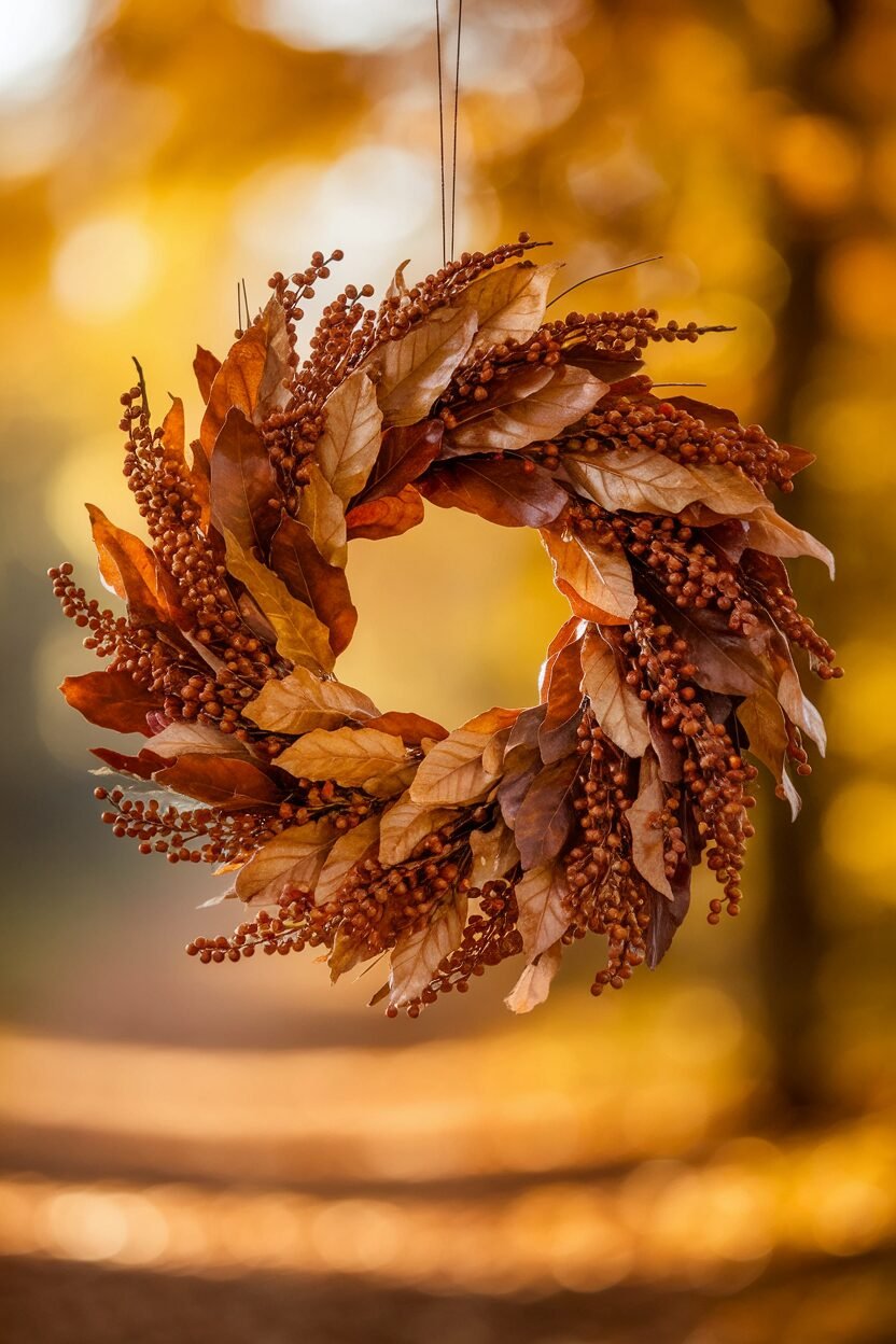 Create your own fall wreath with twigs, leaves, and berries. Hang it on your front door to welcome guests with a burst of fall spirit.