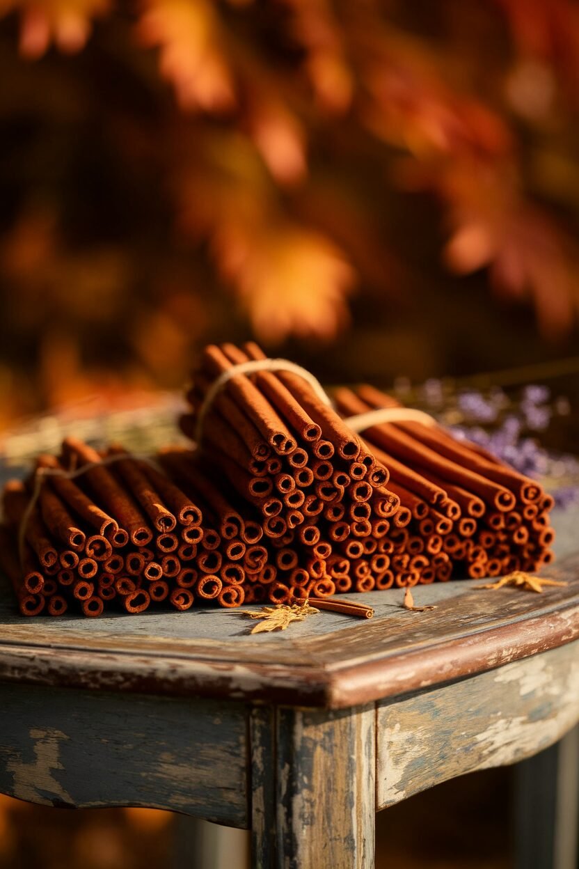 Tie cinnamon sticks together with twine and place them around the house. Not only do they look great, but they also fill the air with a warm, spicy aroma.