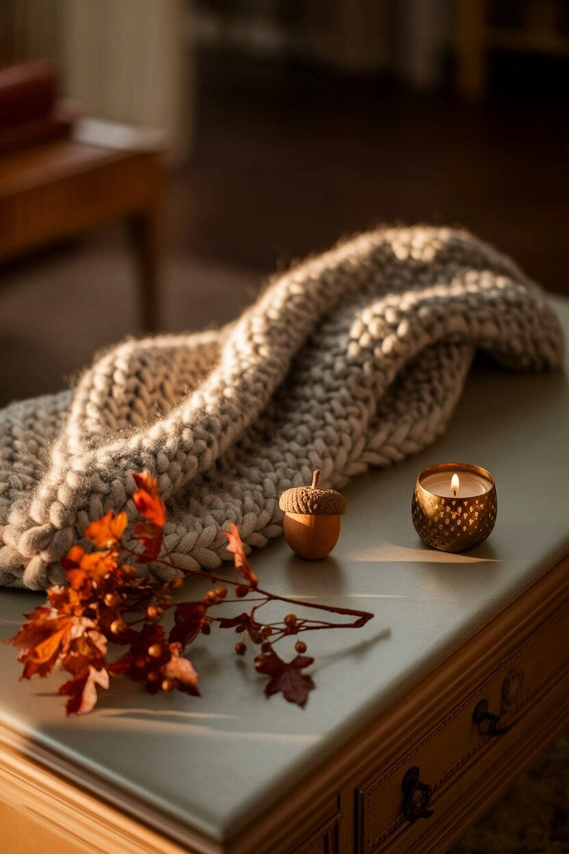 Nothing says cozy like a chunky knit blanket draped across your coffee table. Choose warm hues like burnt orange or deep red to echo the colors of fall. This not only adds texture but also invites you to snuggle up with a good book.