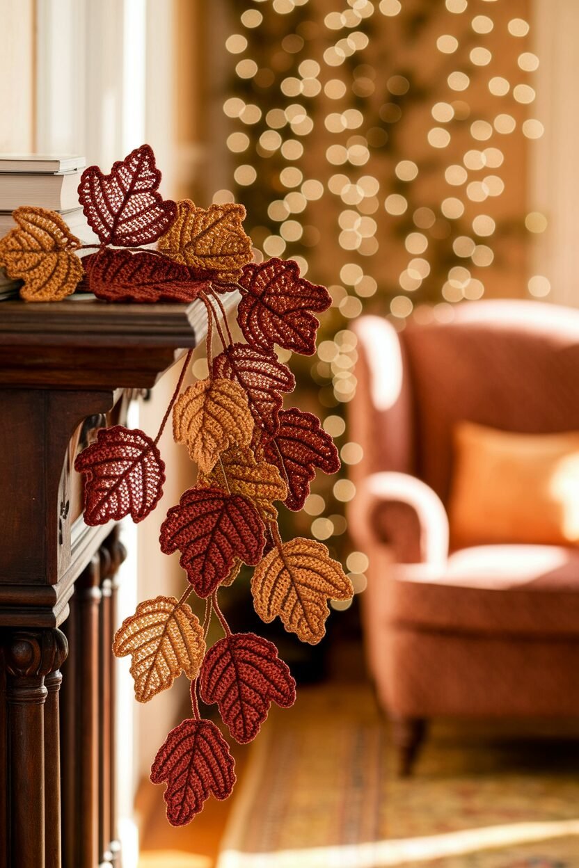 A leafy garland can transform any space into an autumn wonderland. Crochet leaves in various shapes and colors such as red, orange, and gold. String them together to create a garland that cascades beautifully along your staircase or over a window.