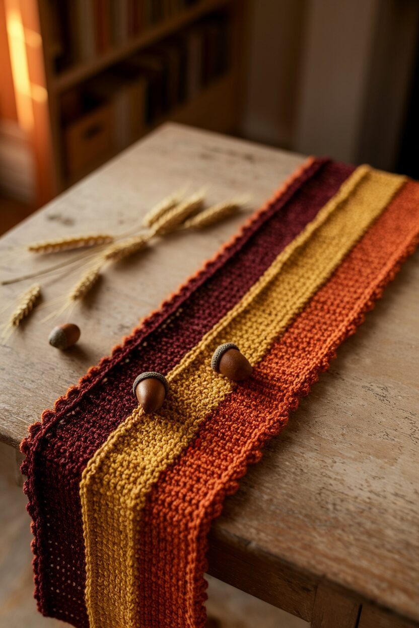 A crochet table runner is a stunning way to decorate your dining area for the fall. Opt for warm colors like deep burgundy or olive green to complement your autumn-themed table settings. The intricate designs can add elegance and warmth to family meals.