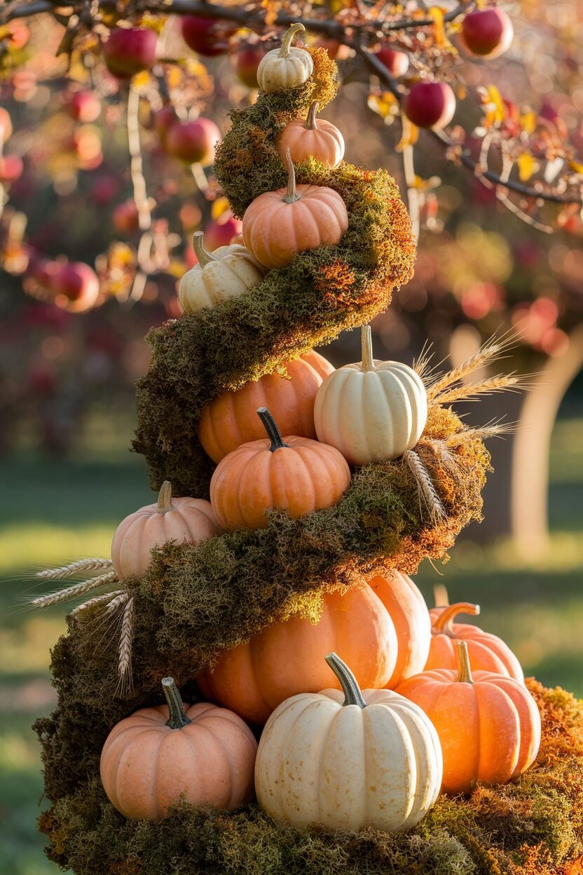 A pumpkin topiary is a stunning way to decorate your porch or entryway. Stack different sizes of pumpkins, securing them with wooden dowels or glue. Add some greenery or fall leaves between the layers for extra flair.