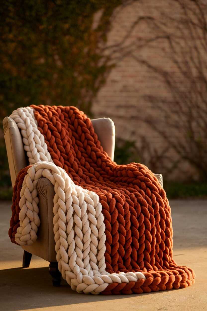 Chunky knit throws are like a warm hug on a chilly fall day. Their oversized loops and rich textures add warmth to any room. You can drape them over a couch or layer them on your bed for an instant autumn feel.