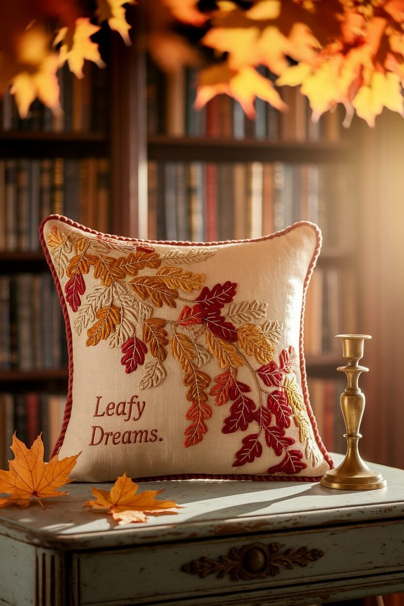 Intricately embroidered leaves bring a touch of elegance to this pillow. It’s a sophisticated way to celebrate the beauty of fall foliage.