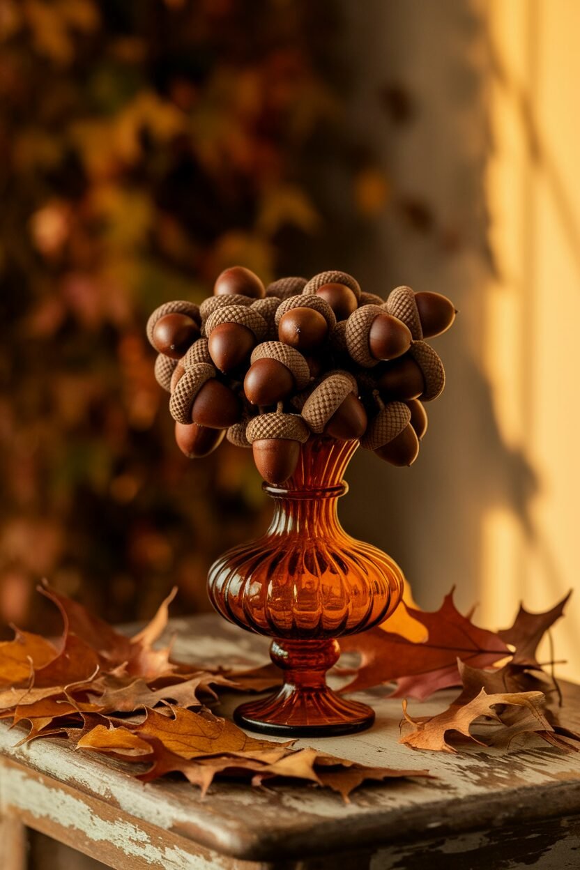 Fill the vases and pair them with flowers or branches. The earthy tones of the acorns will enhance any floral arrangement, giving it a seasonal twist.