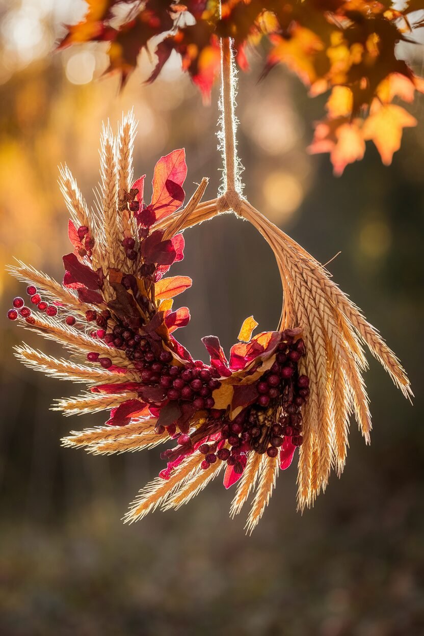 A harvest wreath made of dried corn husks, wheat stalks, and mini pumpkins is like a hug for your door. It’s all about bringing the farm feel home.