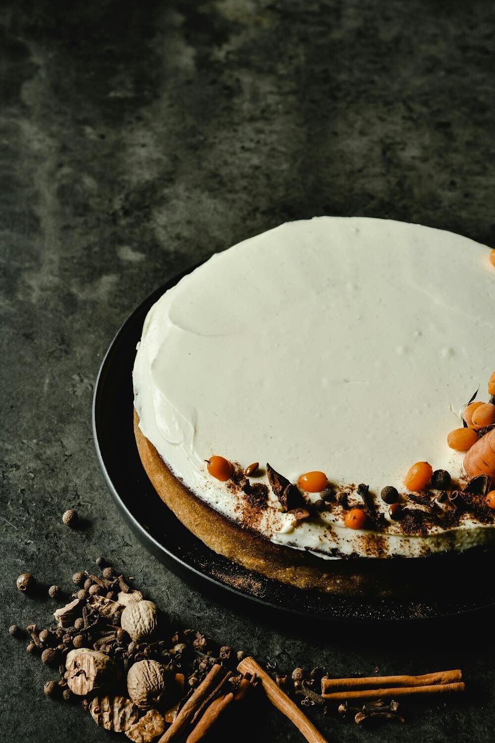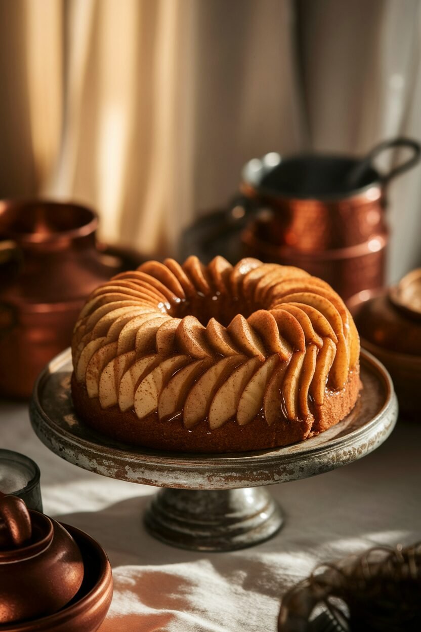 Infuse your cake with the comforting flavors of spiced apples. Use thin slices of apple to decorate the top, slightly caramelized for a glossy finish. Add a sprinkle of cinnamon for extra warmth.