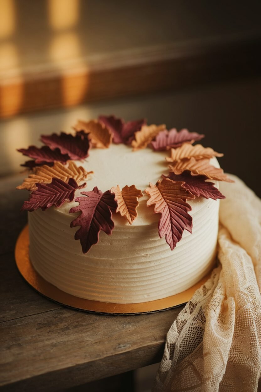 Capture the essence of fall with a cake decorated with maple leaves. Use fondant or edible paper to create delicate leaves in vibrant fall colors.