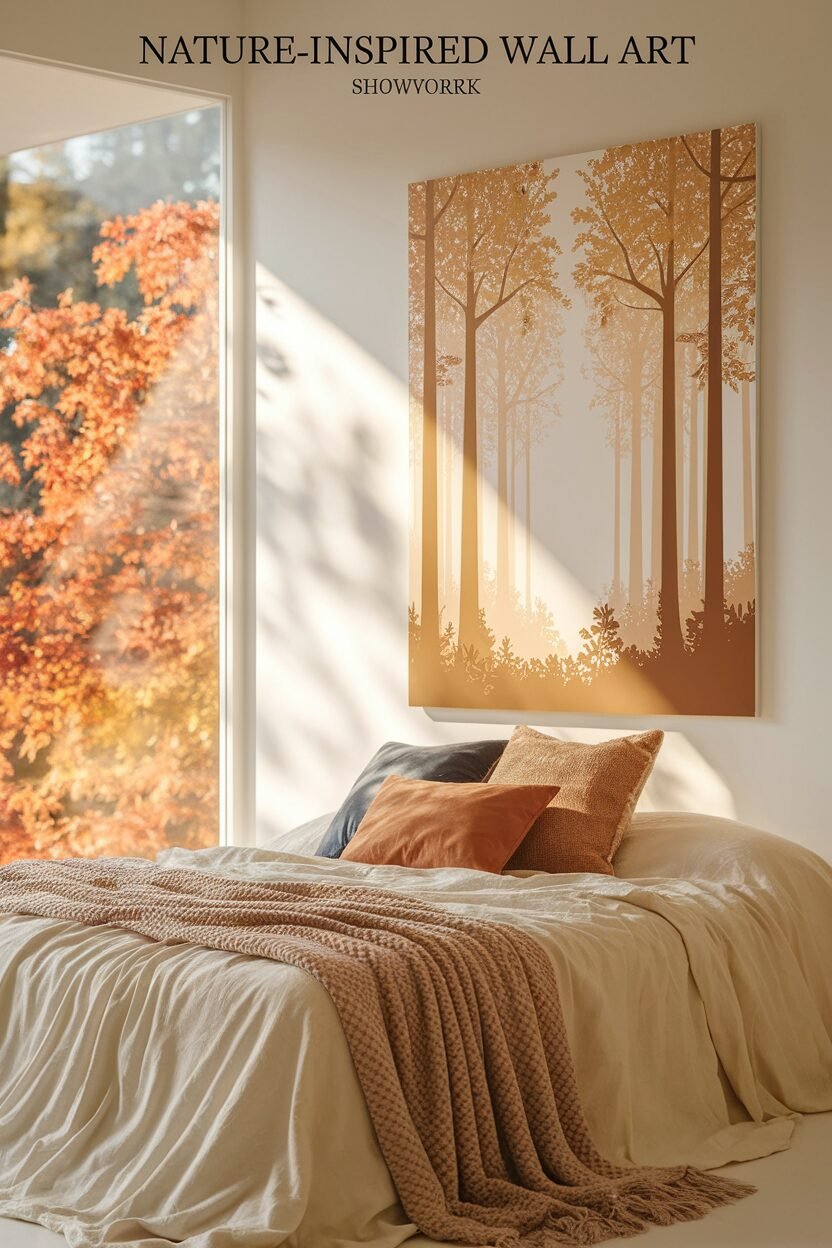Imagine waking up to a serene forest scene or a field of autumn leaves. Nature-inspired wall art can transport you to the heart of fall without leaving your bedroom.