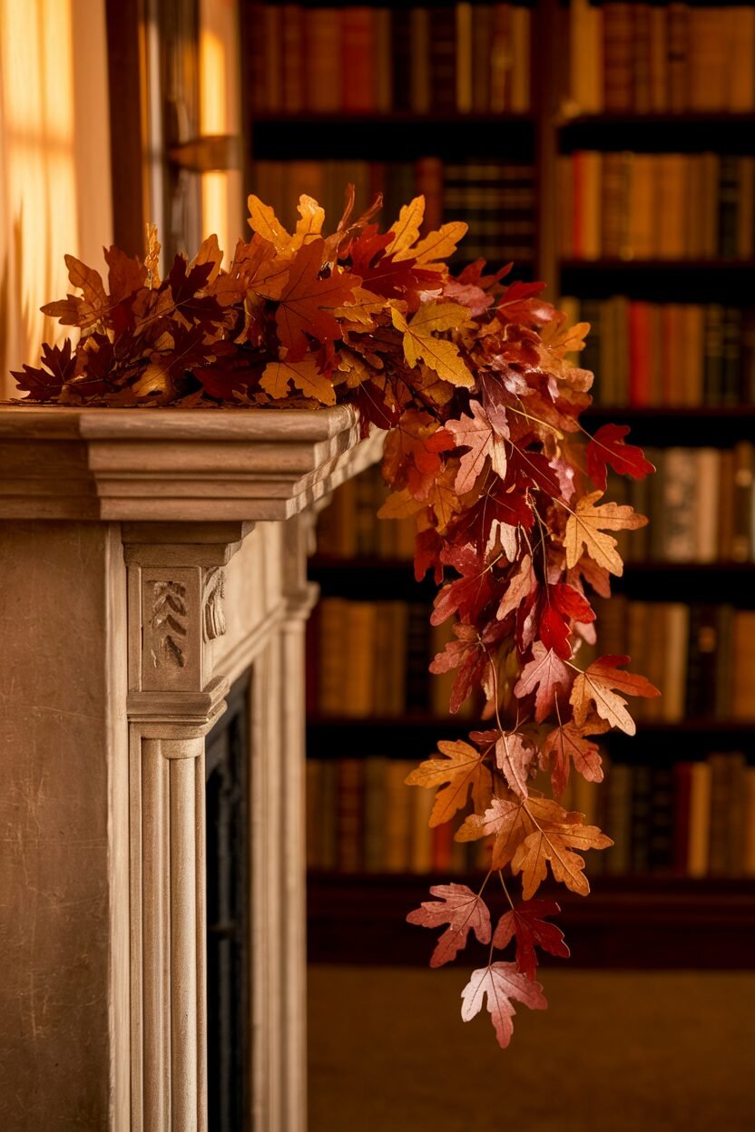 Imagine a garland made of vibrant fall leaves hanging across your mantel. You can use real leaves or craft ones from felt for a longer-lasting effect. It’s a simple way to bring those beautiful autumn colors into your living room.