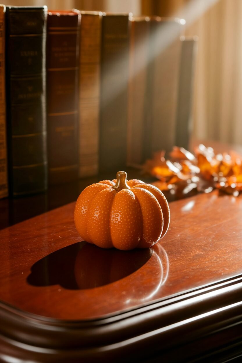 Add a touch of luxury with velvet pumpkins. These soft, plush decorations come in various sizes and colors, perfect for adding elegance to your space. Scatter a few across your desk or shelf for a sophisticated look.