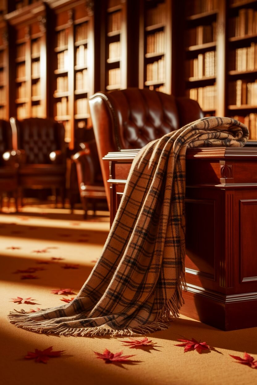 Drape a plaid throw over your office chair to add warmth and comfort. The classic pattern screams fall and instantly makes your space feel more inviting. Choose throws in autumnal colors like burnt orange, deep red, or forest green.