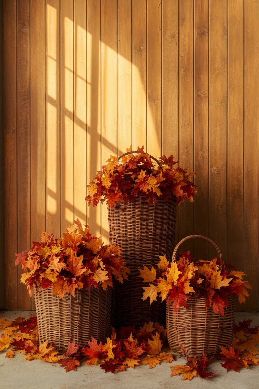 Use wicker baskets for organizing papers or storing extra office supplies. These add a rustic charm that fits perfectly with fall themes. The natural texture of wicker complements the season’s earthy tones.