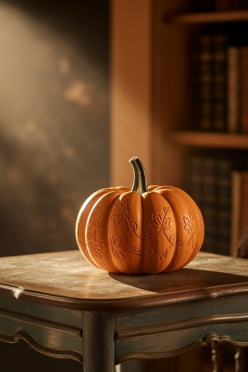 Pumpkins aren’t just for carving. Use them as stunning centerpieces on your dining table. You can mix and match different sizes and colors; think white, green, and classic orange pumpkins for a visually appealing look.