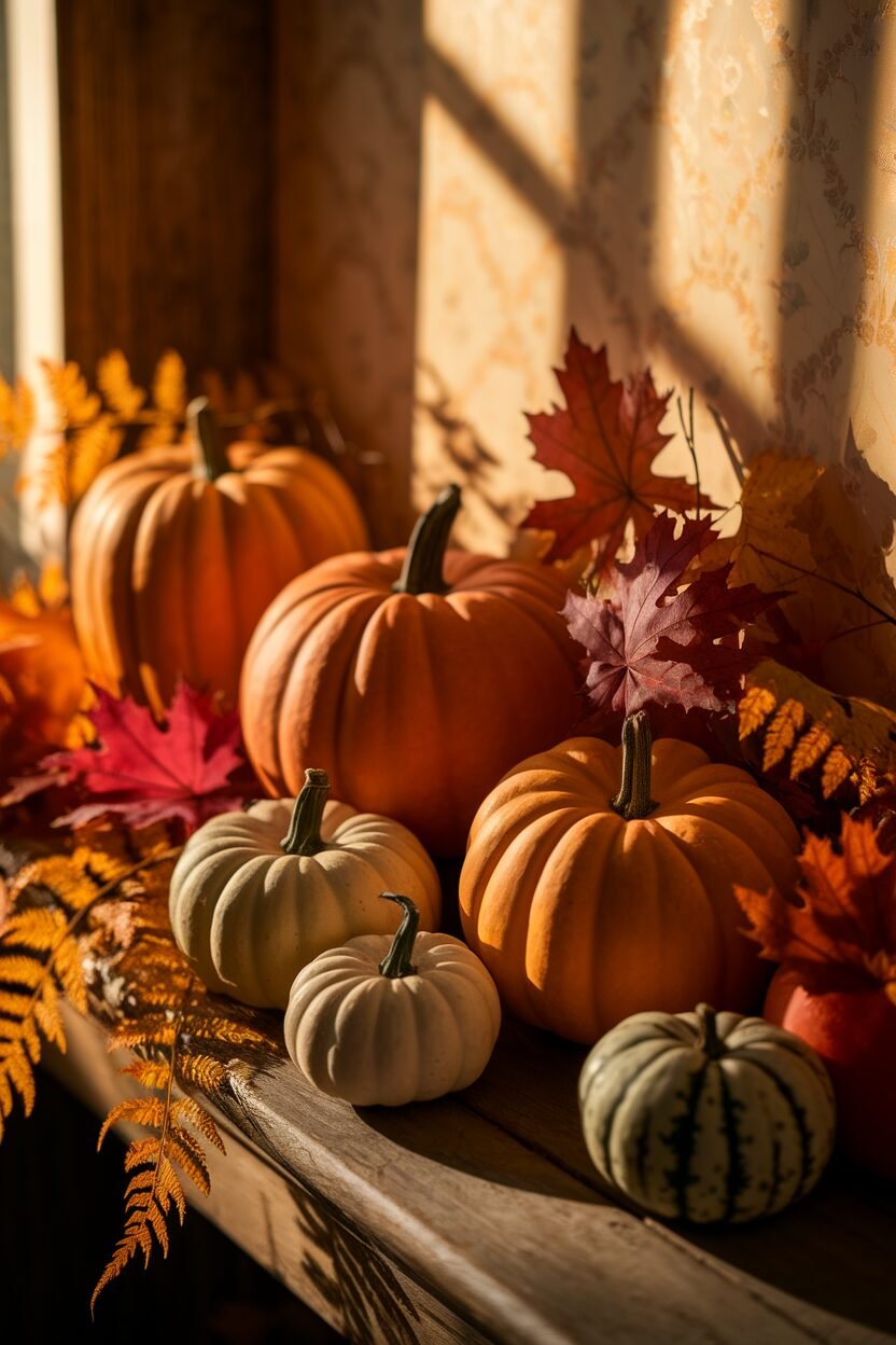Pumpkins aren’t just for Halloween! Arrange them in clusters or line them up on your porch for a festive feel.