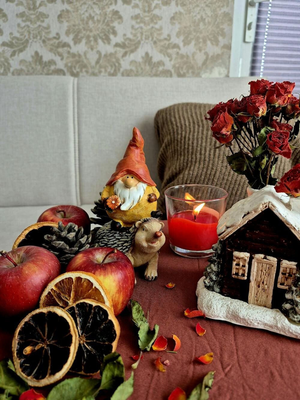 Use apples, pears, or pomegranates for a pop of color. Add candles for a warm and inviting glow.
