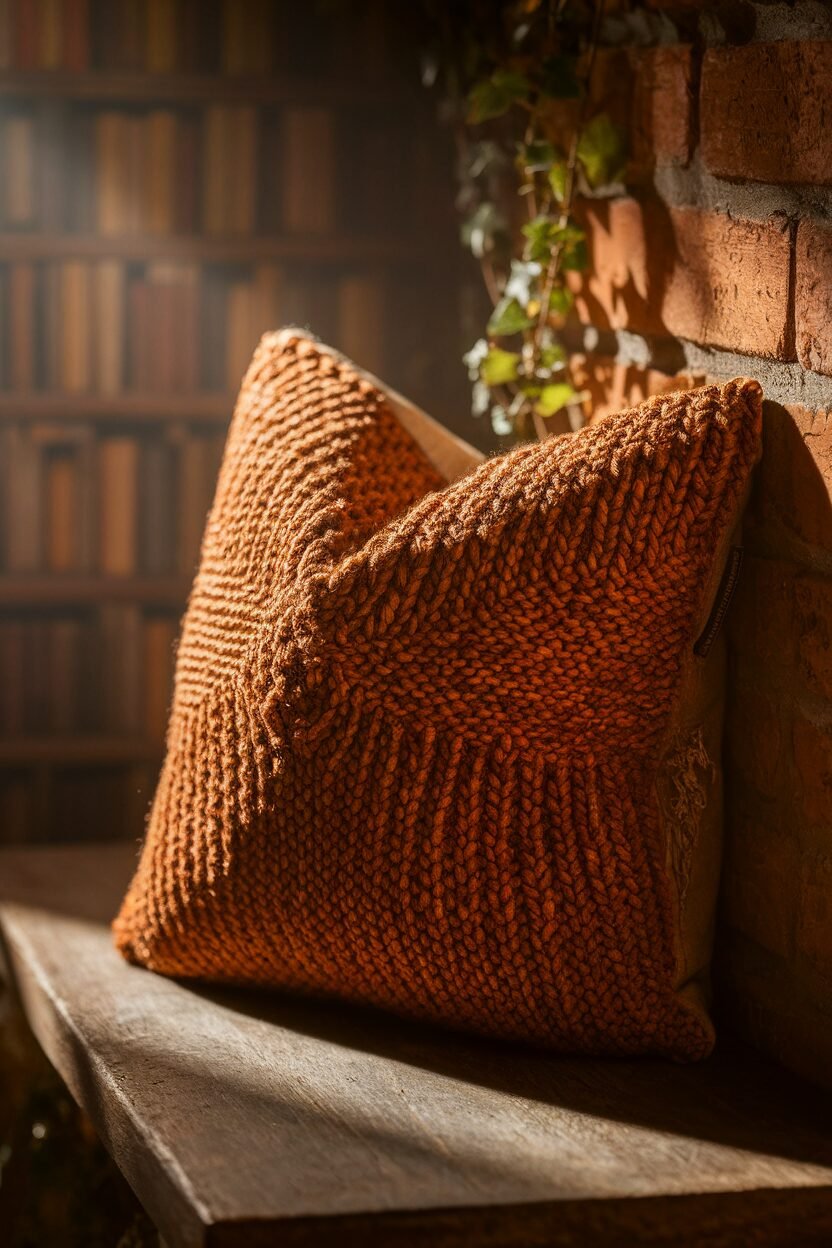 Choose from a variety of autumnal colors like mustard, rust, or deep green. The chunky knit adds visual interest, making it a focal point on your sofa or bed. It’s like wearing your favorite sweater, but for your pillows!