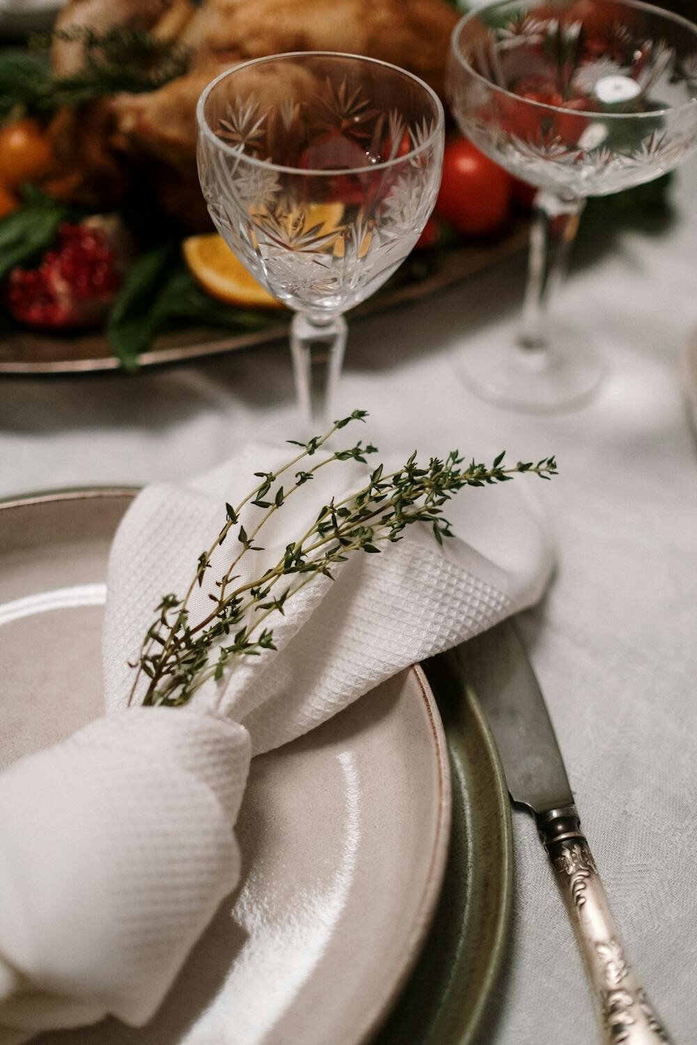 Gold accents add a touch of glamour. Use gold-rimmed plates or cutlery for a sophisticated look.