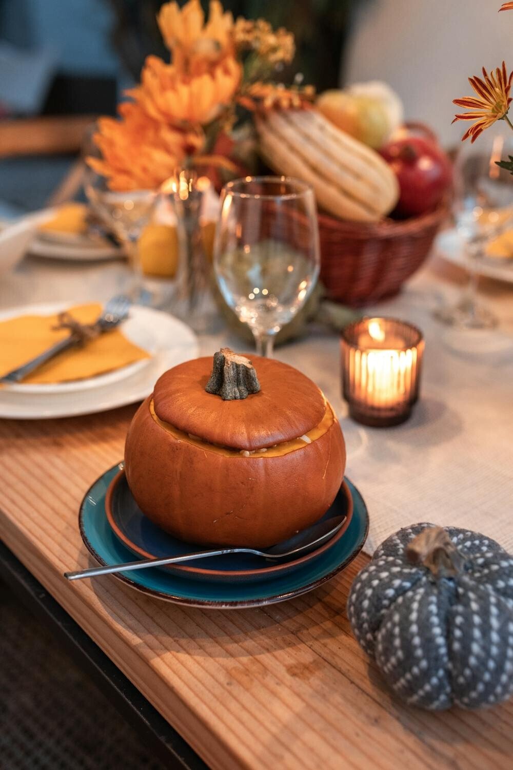 Diffusers or scented candles work well. It’s a subtle way to immerse your guests in the fall atmosphere.