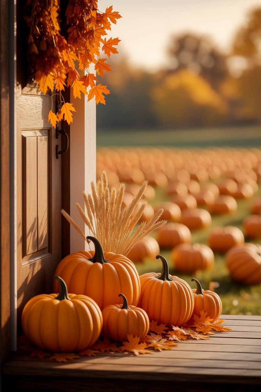 A friendly scarecrow standing guard at your door adds whimsy and fun. It’s a classic fall decoration that never goes out of style.