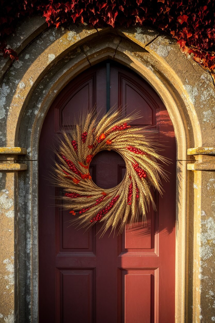 Imagine a wreath made of wheat stalks, corn husks, and tiny pumpkins. This wreath screams fall and gives your door a farmhouse charm.