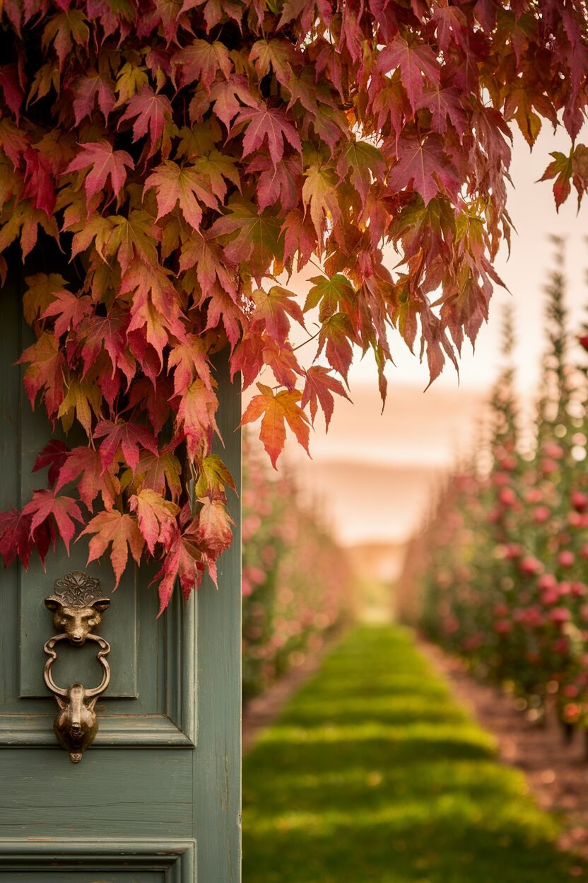 Imagine a cascade of colorful leaves falling down your door. This gives a sense of movement and life.