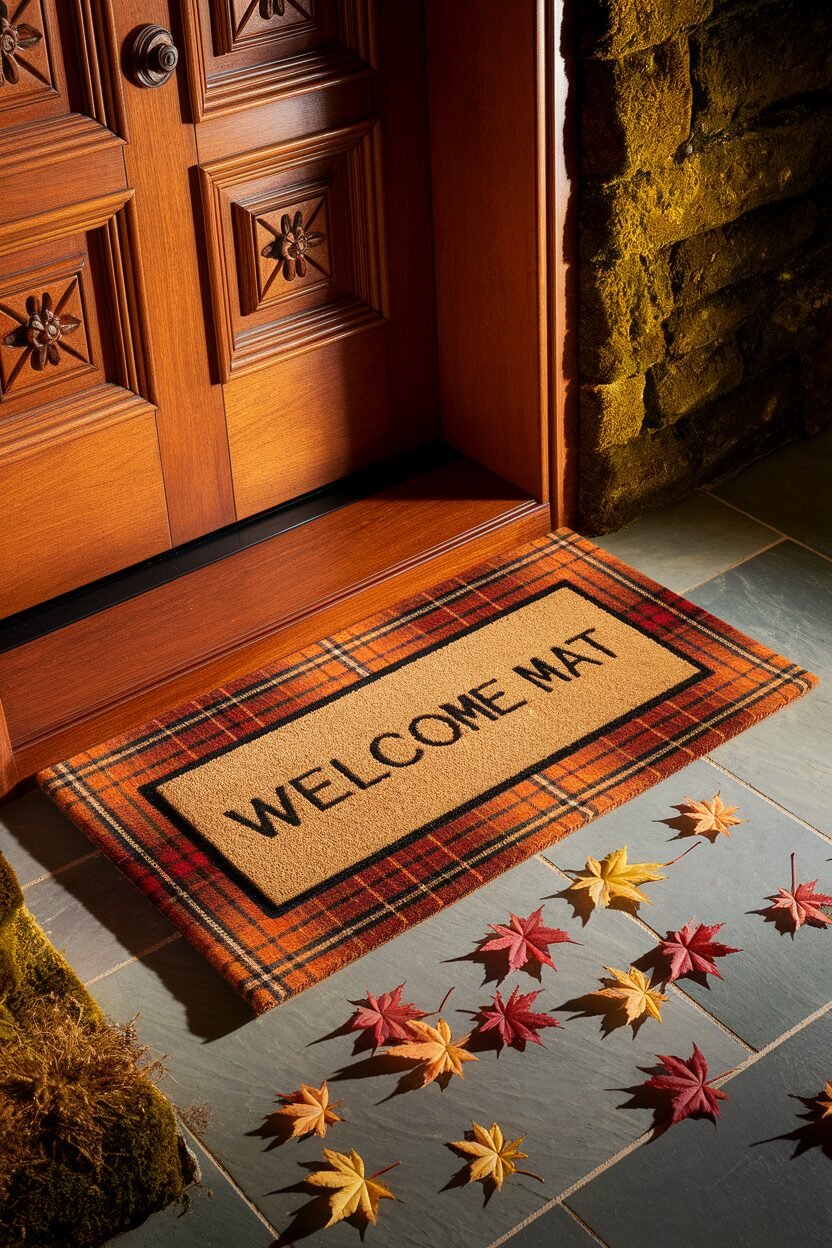 There’s something comforting about plaid, and a plaid welcome mat is a simple way to add that cozy vibe to your entryway. Choose warm tones like red, orange, and brown to echo the fall foliage.