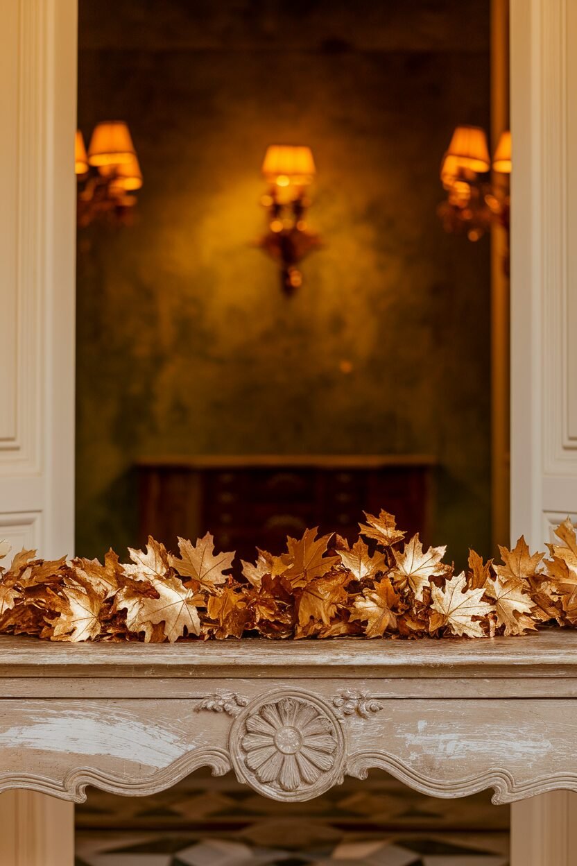Not only does it look beautiful, but it also brings the outdoors in, creating a seamless transition from your doorstep to the inside of your home. You can easily find these garlands at craft stores, or you can make your own with some gold spray paint and real leaves.