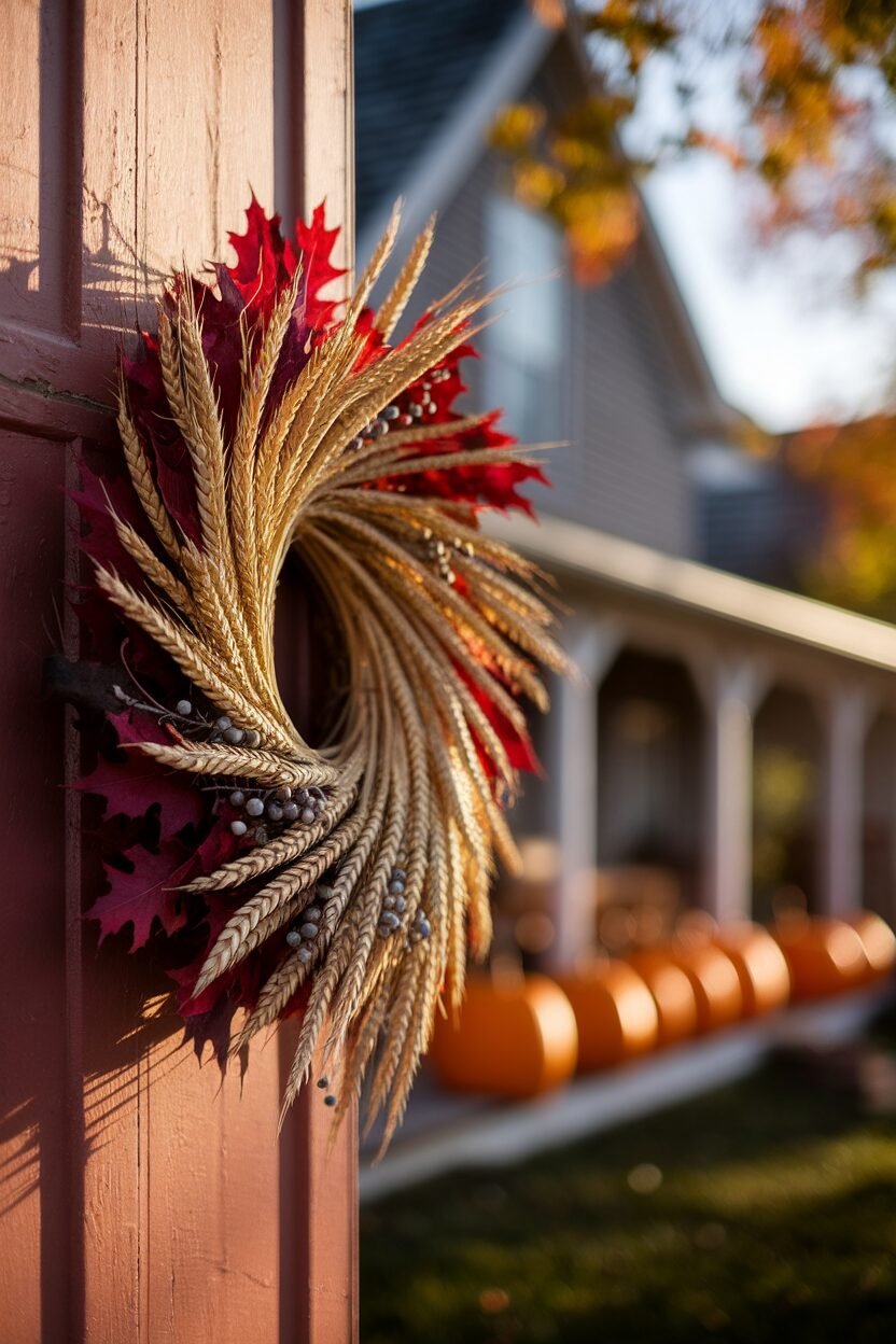 Welcome guests with a rustic wreath that captures the fall spirit. Made from twigs, dried flowers, and autumn leaves, these wreaths add charm to your front door. They’re a delightful nod to nature’s beauty.