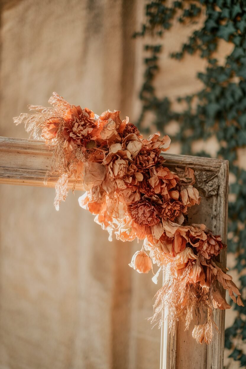Dried flowers are perfect for fall, offering long-lasting beauty. String them together with twine to make a garland that drapes gracefully across mantels or doorways.