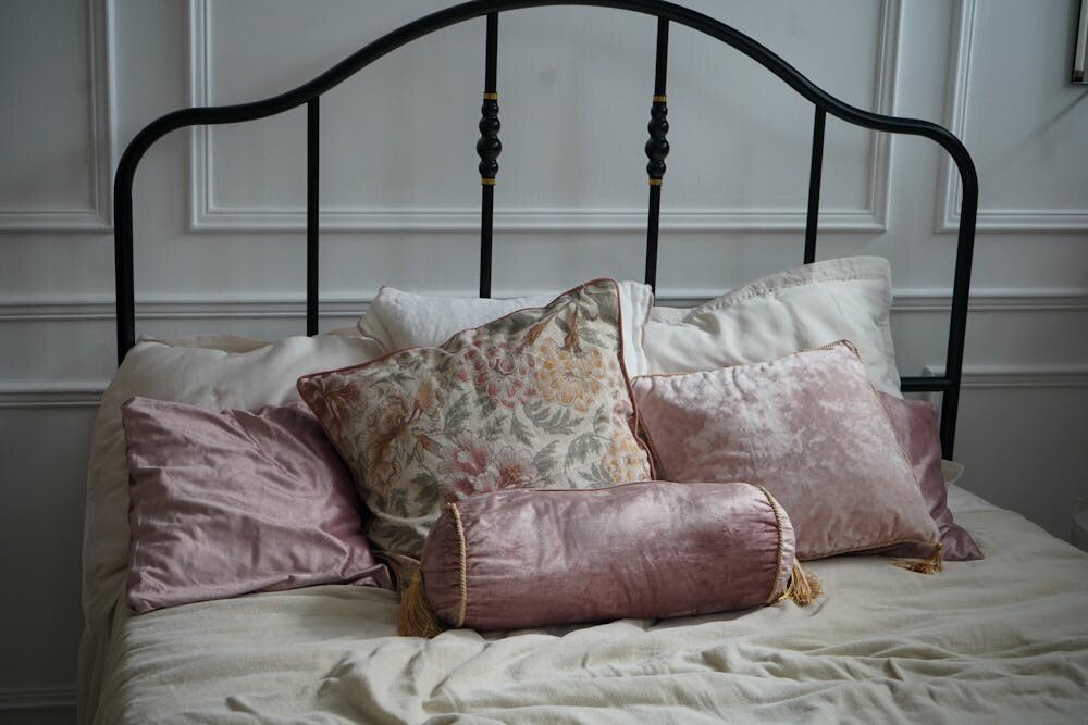 Add a touch of luxury with velvet throw pillows adorned with floral designs. Choose rich colors like burgundy or mustard for a cozy feel.