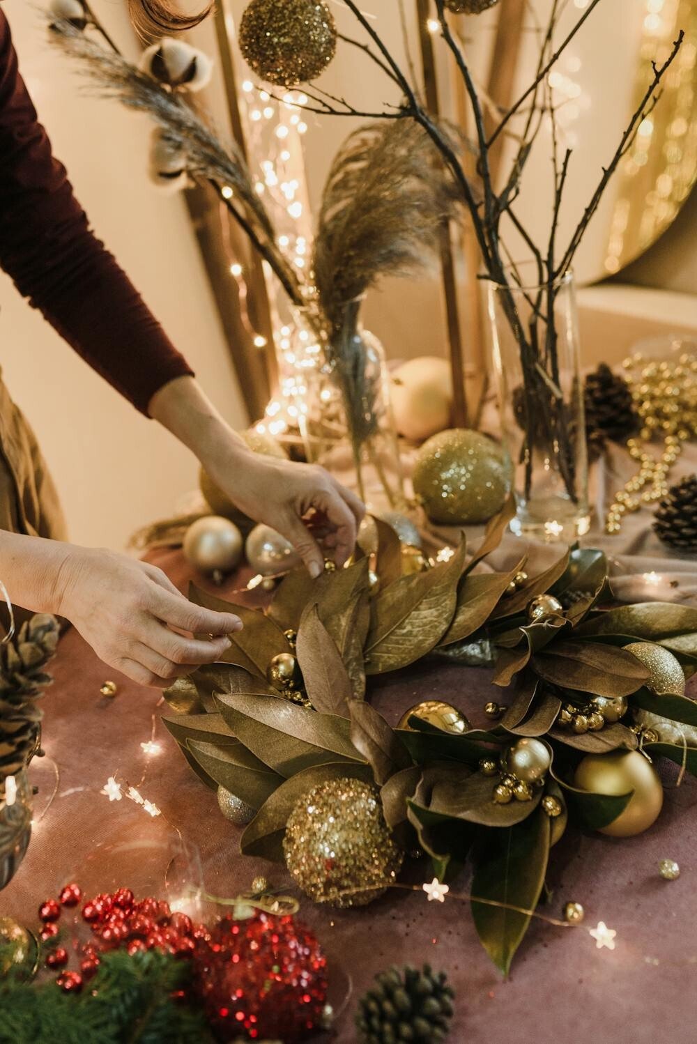 This setup captures the essence of fall with its rich colors and textures. It’s easy to personalize with leaves from your backyard and berries from a craft store.