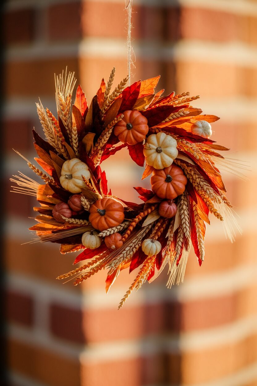 Imagine opening your kitchen door to a vibrant harvest wreath. Made from twigs, leaves, and berries, these wreaths can hang on walls or doors, adding a rustic touch. Their burst of color instantly livens up the space.