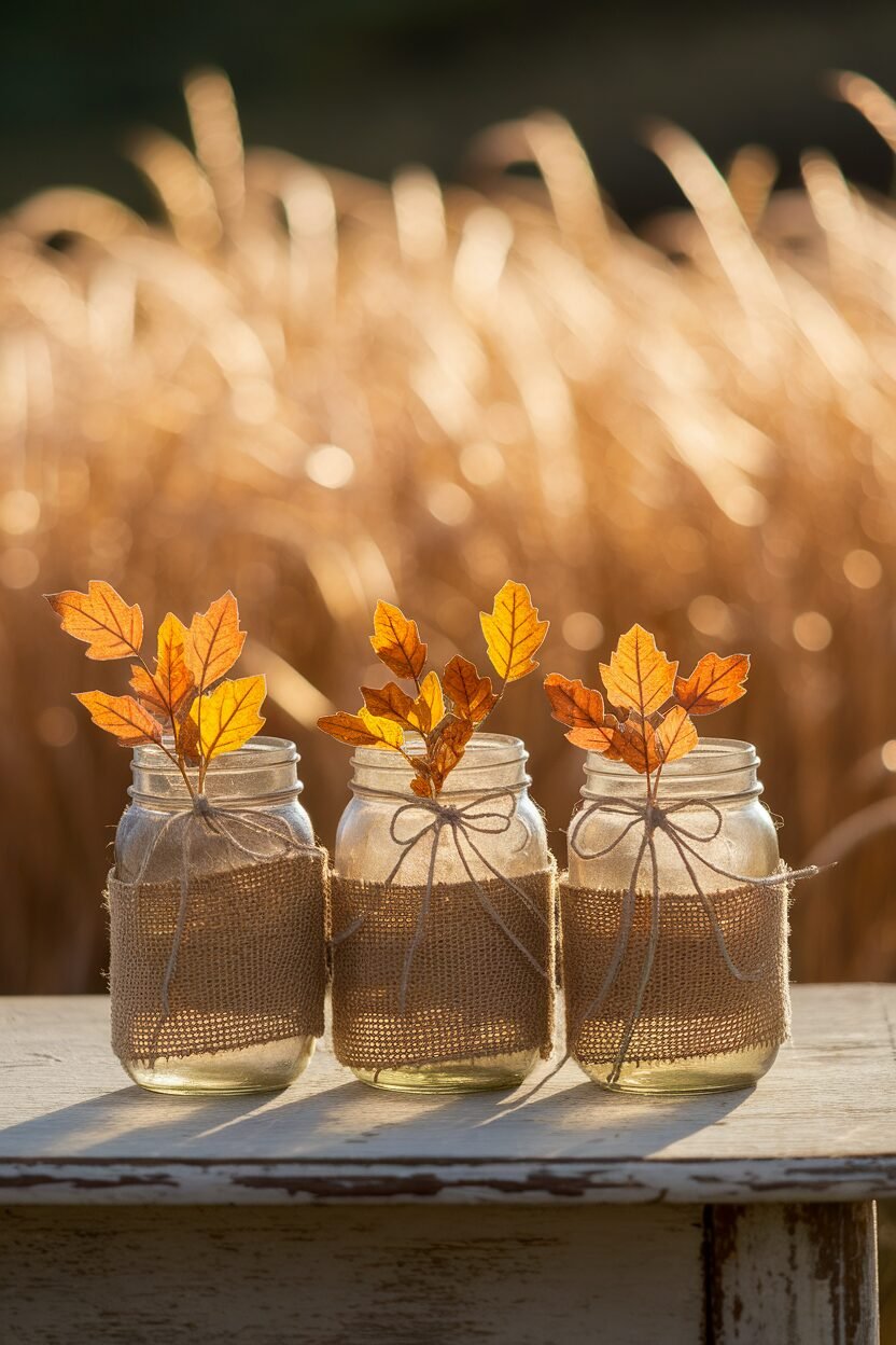 Burlap and mason jars are a match made in rustic heaven! Wrap the jars with strips of burlap and secure them with a twine bow. The texture of the burlap adds a cozy, farmhouse feel to your decor.