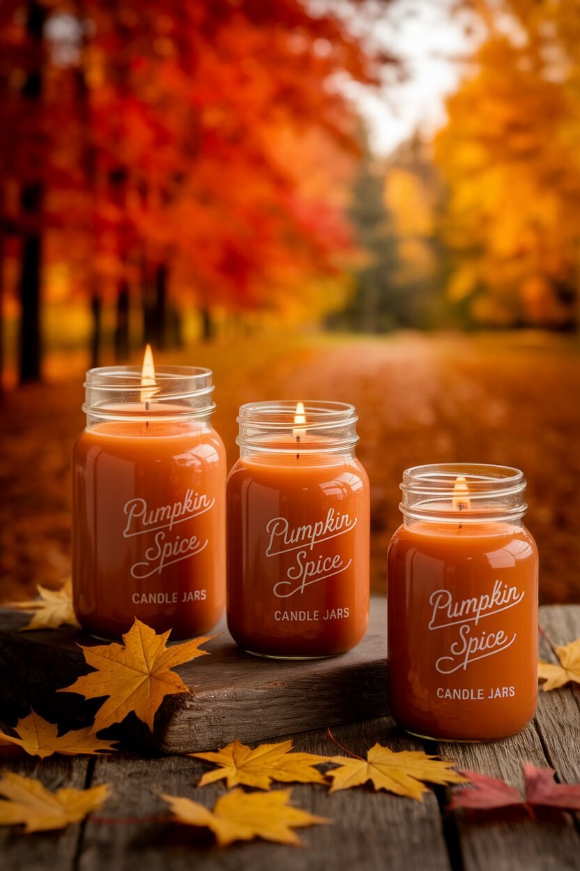 Imagine the comforting scent of pumpkin spice wafting through your home. These candle jars are filled with pumpkin spice-scented wax, perfect for creating a cozy atmosphere.