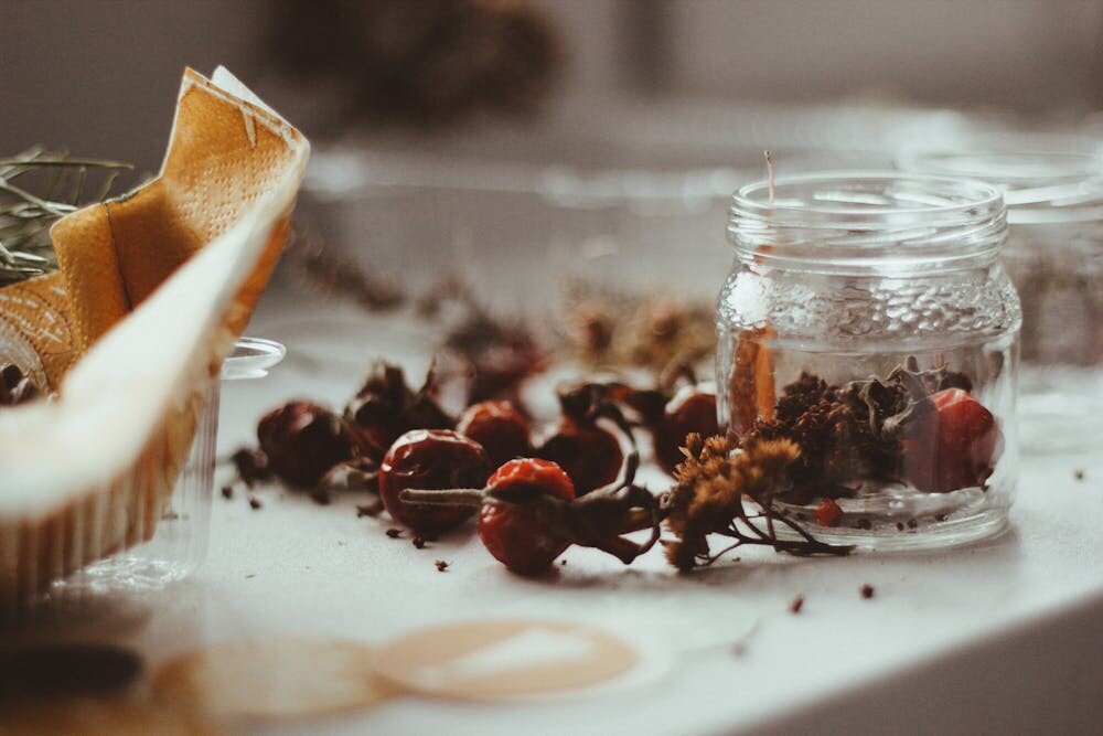 Create an inviting aroma by filling mason jars with homemade apple cinnamon potpourri. Add dried apples, cinnamon sticks, and cloves for a fragrant, seasonal scent.